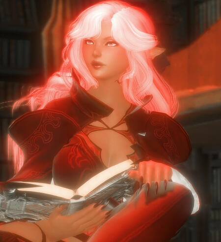 Cleopatra is a sweet talking, outspoken scholar operating out of Old Sharlayan. While she’s been there quite some time, she was born in Ishgard.She spent the vast majority of her upbringing outcasted as the bastard child of an Elezen noble and a Hyuran prostitute. When she was a child, she was abandoned by her Hyuran mother in the Coerthan Central Highlands and taken in by a team of wandering Astrologians. She was promptly returned to Ishgard and left in the care of the church. She had no given name and was known only to the people as "Petit Soleil" due to her bright personality and cheery disposition.As a young woman, she showed a passion for the pursuit of knowledge. This much was obvious to the Archbishop, who's only plan for her up until this point was to keep her in servitude. In order to escape the Archbishop's control, she fled Ishgard and made for the mountains of Dravania, eventually settling in the Sharlayan Colony there. She took on a new name and a new identity as a student of astromancy and summoning magicks. Here, she discovered that she had been gifted with a rare talent to see into the past and listen to the voice of the star, allowing it to guide her in the right path. A gift referred to by her Sharlayn peers as "the Echo". When the threat of Garlean invasion reached Dravania, she fled with the rest of the colony back to the Sharlayan motherland.